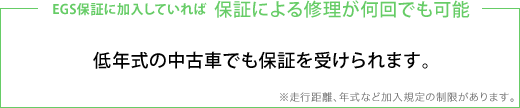 オート・インフォEGSは、そのような不安を解消できる保証をご用意いたしました。保証期間中なら何回でもご利用可能、保証対象部品なら修理金額の上限もありません*。