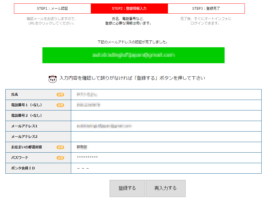 ご記入いただいた内容をご確認の上問題なければ【登録する】ボタンをクリック! |